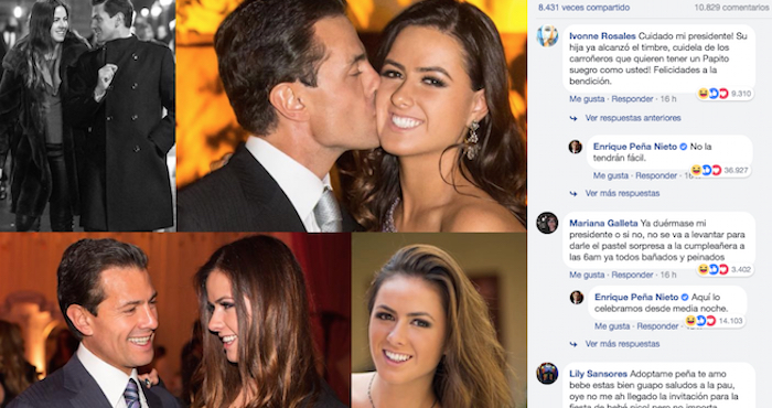 "Ya duérmase mi presidente o si no, no se va a levantar para darle el pastel sorpresa a la cumpleañera a las 6am ya todos bañados y peinados", se lee en otro comentario de la usuaria Mariana Galleta, al que Peña respondió "Aquí lo celebramos desde media noche".