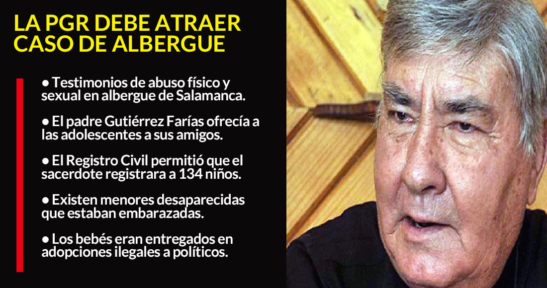La Red por los Derechos de la Infancia en México (Redim) exigió, el pasado 26 de julio, a la PGR atraer el caso de la Asociación Civil Ciudad de los Niños a cargo del sacerdote Pedro Gutiérrez Farías, en Michoacán y Guanajuato, donde infantes y adolescentes fueron víctimas de abusos sexual, físico, emocional, psicológico y en el que incluso jóvenes embarazadas fueron desaparecidas.