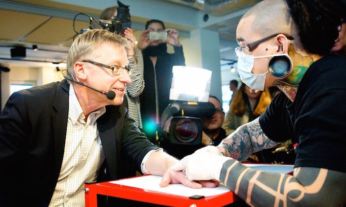 "Pero, por otra parte, la gente se ha estado implantando cosas en sus cuerpos, como marcapasos y otras cosas para controlar el corazón", dijo. "Eso es algo mucho más serio que tener un microchip que se puede comunicar con aparatos".