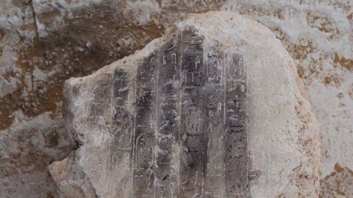 Okasha agregó que encontraron un bloque de alabastro blanco de 15 centímetros de ancho y 17 de alto en el que hay grabadas 10 líneas jeroglíficas verticales. Además se ha encontrado un dintel de granito y bloques de piedras que muestran el diseño interno de la pirámide.