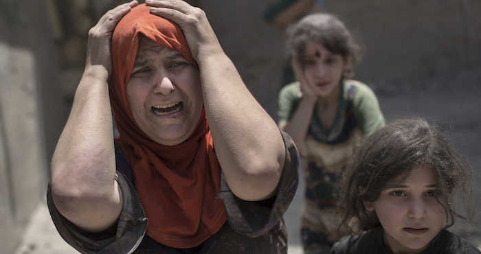 Una mujer grita tras huir con su familia por un callejón destrozado mientras las Fuerzas Especiales iraquíes siguen avanzando en su batalla contra milicianos del grupo Estado Islámico en la Ciudad Vieja de Mosul, Irak, el domingo 2 de julio de 2017. Foto: AP Foto/Felipe Dana