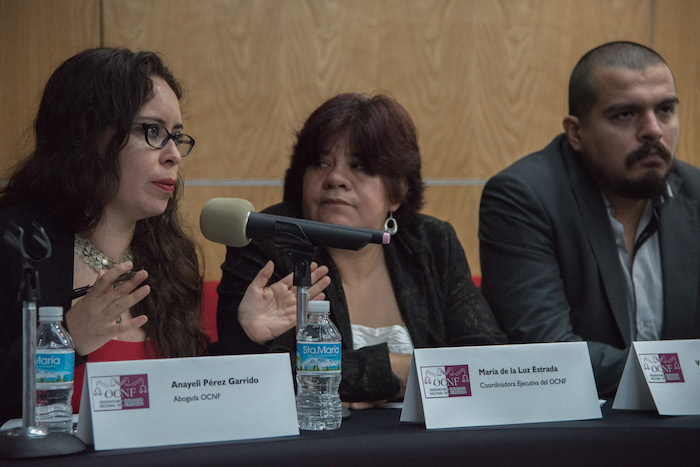 María de la Luz Estrada, coordinadora del Observatorio Ciudadano, la abogada Anayeli Pérez Garrido y Victor Chávez Cornejo, experto en criminalística, ofrecieron hoy una conferencia de prensa para desmentir la resolución ofrecida por la PGJ-CdMx) en el caso del fallecimiento de la joven Lesvy Berlín, en Ciudad Universitaria (CU).