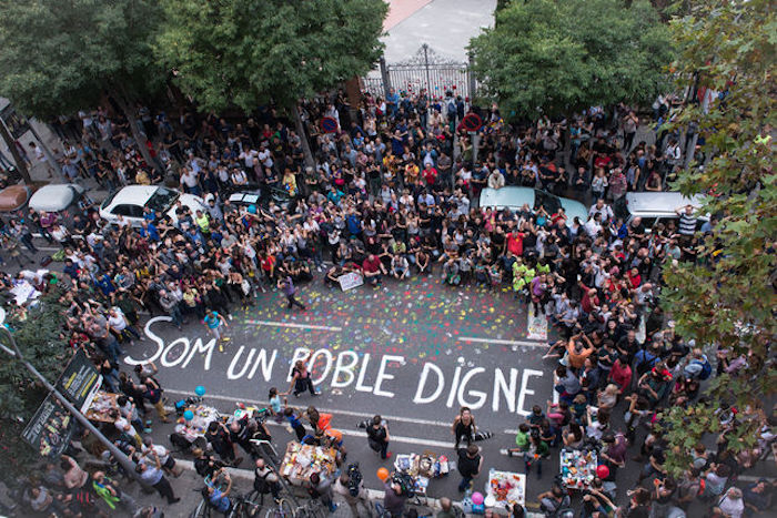 Manifestantes levantando las manos en la convocatoria de plaza Universitat Foto: Robert Bonet vía Ediario.es