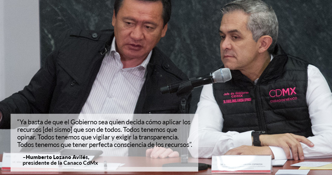 El lunes pasado, un grupo de 30 organizaciones civiles, empresariales y académicas anunciaron el lanzamiento de la plataforma #Epicentro para dar seguimiento al destino y uso de los recursos para la reconstrucción. Bohórquez estimó que en dos semanas más habrá 50 organismos de la sociedad civil involucrados en la iniciativa.