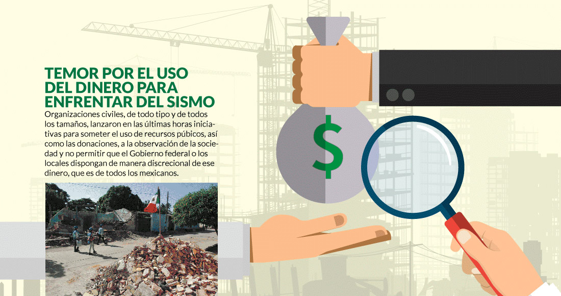 Los terremotos de septiembre trajeron además de la devastación, muerte y personas damnificadas sin vivienda y sin patrimonio, el riesgo de que los fondos gubernamentales y privados para la reconstrucción de las zonas afectadas se utilicen de manera incorrecta, alertan organizaciones civiles que buscan fiscalizar y seguirle la huella a ese dinero.