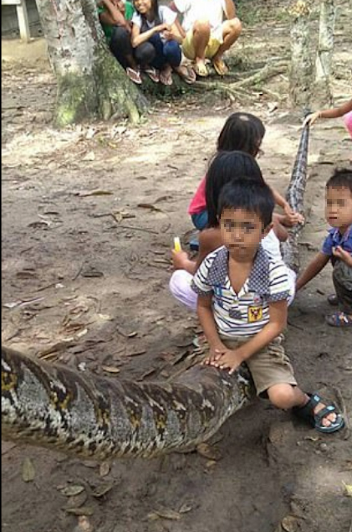 Robert Nababan, de 37 años, se encontraba camino a su trabajo en en la provincia de Riau, en Indonesia, cuando observó que dos personas no podían avanzar debido a que la serpiente gigante les bloqueaba el camino.