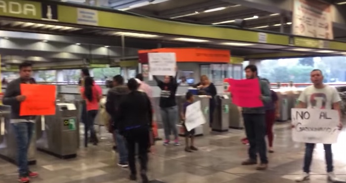 Ante la falta de rutas de transporte, un grupo de ciudadanos tomó al menos tres estaciones del tren ligero (metro) y dejaron pasar a los usuarios de manera gratuita en protesta por el paro de camiones y por el aumento al precio de la gasolina.