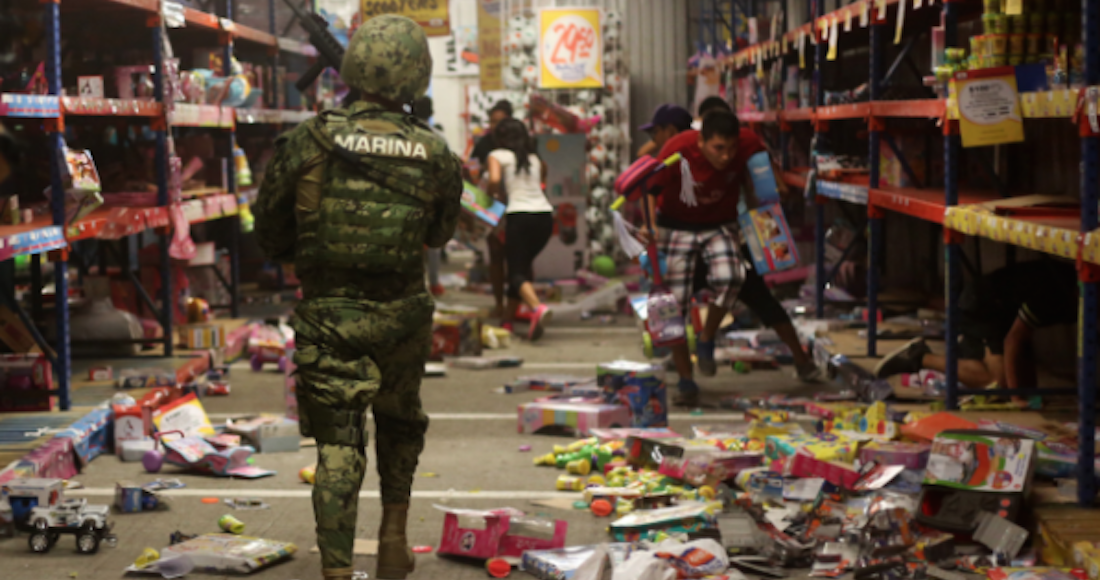 De acuerdo con información de Efe, elementos de la Secretaría de Marina dispersaron con disparos al aire a un grupo de saqueadores.