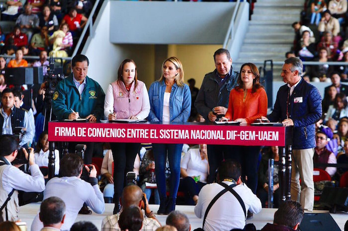 Durante los últimos siete meses, previo a la veda electoral, la Primera Dama, Angélica Rivera Hurtado y al menos 21 funcionarios federales, tres en promedio cada semana, acudieron al Estado de México a entregar apoyos o lanzar programas sociales.