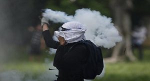 Los manifestantes intentaron infructuosamente negociar su salida del campus universitario por más de una hora hasta que los efectivos comenzaron a lanzar gases lacrimógenos y balas de goma a un pequeño grupo que buscó sin éxito superar el cerco.