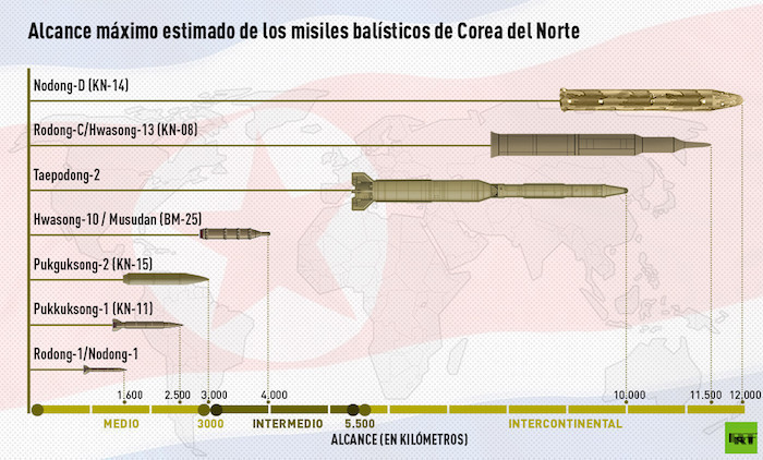 La exitosa prueba del misil balístico norcoreano Hwasong-12 fue efectuada la madrugada del pasado 14 de mayo. El misil voló alrededor de 800 kilómetros, alcanzó una altura de más de 2 mil 100 kilómetros y media hora después cayó en el mar del Japón.