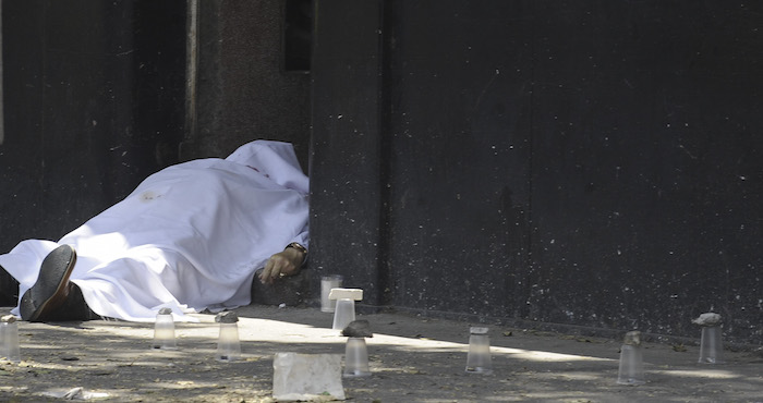 La sangre ensució la camisa color blanco que portaba la víctima, quien también vestía pantalón oscuro, un reloj lujoso y un anillo de oro, fue lo que las autoridades reportaron sobre la escena del crimen.
