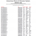 La organización indicó que está es la fase uno del operativo llamado #OpDiputados, el cual contiene una segunda operación, según informó el sitio de activistas, sin dar mayor detalle sobre la logistica del operativo.Este ataque se suma a la pasada publicación de información de funcionarios en la Secretaría del Medio Ambiente y Recursos Naturales y que logró “tirar” la página web de esa dependencia federal. En el listado dado a conocer por el grupo de activistas, se incluyen también los números de teléfono, las direcciones, los nombres completos, así como sus correos personales o institucionales.Esa misma tarde, los ciberactivistas también intervinieron el sitio del Organismo Operador de Agua Potable, Alcantarillado y Saneamiento de Morelia, Michoacán, y el de la empresa Fomento Económico Mexicano en España, en protesta por la construcción del Estadio de Futbol Monterrey en el bosque La Pastora, en Nuevo León. Le llamaron #OpPastora.Anonymous es el mismo grupo que esta semana declaró la guerra a Los Zetas, en reclamo por el secuestro de uno de sus activistas en Veracruz. Al cártel criminal no le quedó otra que liberar al miembro de los Anónimos, luego de que el colectivo amenazara con revelar nombres y datos de funcionarios, policías e incluso taxistas coludidos con Los Zetas.Antes, Anonymous también atacó las páginas del gobierno federal el pasado 15 de septiembre.Los datos revelados por Anonymous Mexico & Mexicans Hackers son los siguientes:#OP15S 1 fase"Datos personales Curp Mails nombre completo RFC de los Diputados."Telefonos de las distintas áreas de los jefes de área en la cámara de diputados (los tel celulares son personales)."Datos personales de los zánganos de los diputados".