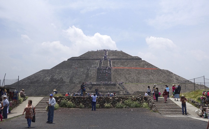 Turistas observan la Pirámide del Sol en las ruinas de Teotihuacán. Foto: Ross D. Franklin / AP