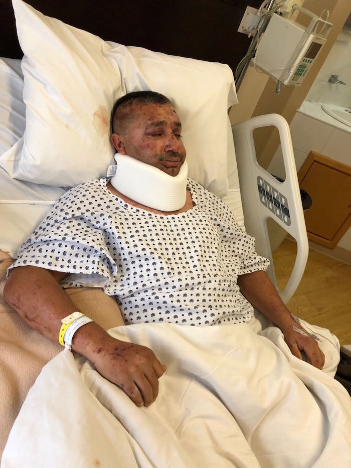 Jesús se cansa inmediatamente al hablar. Es debido a las lesiones que sufrió. El reporte médico establece una lesión en el tórax, en dos vértebras, en el cuello, inflamación en los pulmones y otras lesiones que, de no cuidarlas, pudieran desencadenar problemas renales.