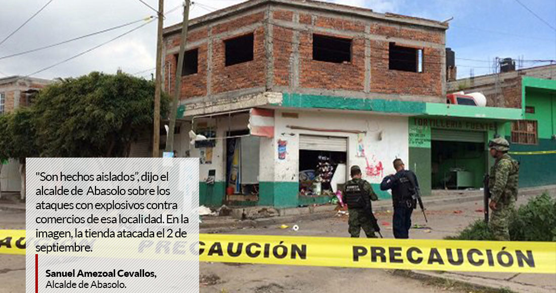 El viernes pasado, a solo tres días de un estallido en un depósito de cerveza en Abasolo, Guanajuato, causado por un artefacto explosivo, ocurrió dos explosiones más en negocios de esa ciudad.