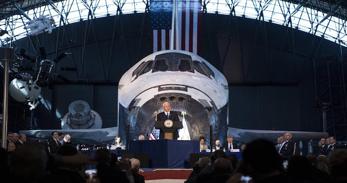 Pence preside el Consejo Nacional Espacial, un órgano de la Oficina Ejecutiva del presidente de EU, Donald Trump, quien pretende potenciar las ambiciones espaciales de su país.