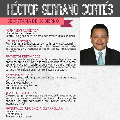 *Secretaría de Gobierno -Héctor Serrano Cortés, quien ocupaba el mismo cargo durante la gestión de Marcelo Ebrard.