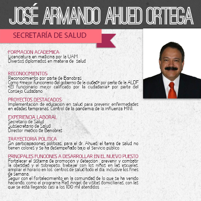 *Secretaría de Salud - Armando Ahued, quien desempeñana el mismo cargo en el gobierno de Ebrard.