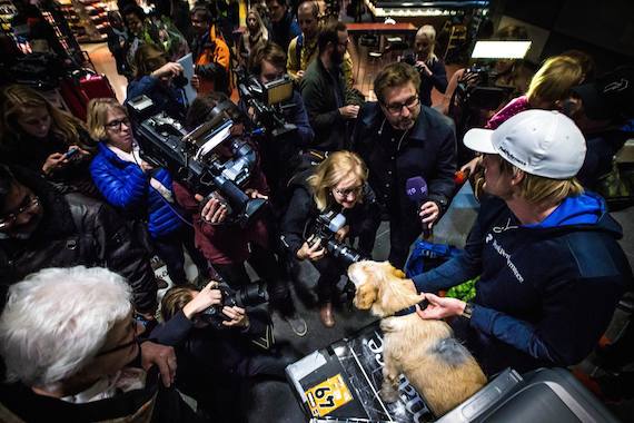Finalmente, a través de Facebook Mikael Lindnord, líder del equipo dio a conocer las buenas noticias: "Casi lloro en frente de la computadora cuando recibí la aprobación del Consejo de Agricultura para que Arthur fuera a Suecia". Así es como fue despedido por el personal de las aerolíneas de Quito, luego de que se difundiera la historia de este perro y asistieron numerosas personas. Así como al aeropuerto de Arlanda, a donde reporteros y varios medios arribaron para darle una cálida bienvenida al famoso can.