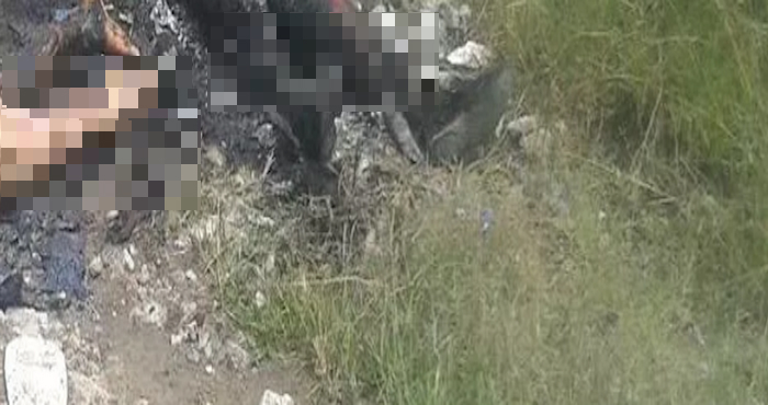 Habitantes de la zona reportaron el crimen a las autoridades, quienes se trasladaron al sitio y apagaron las llamas que aún consumían el cadáver.