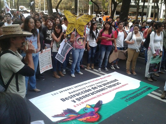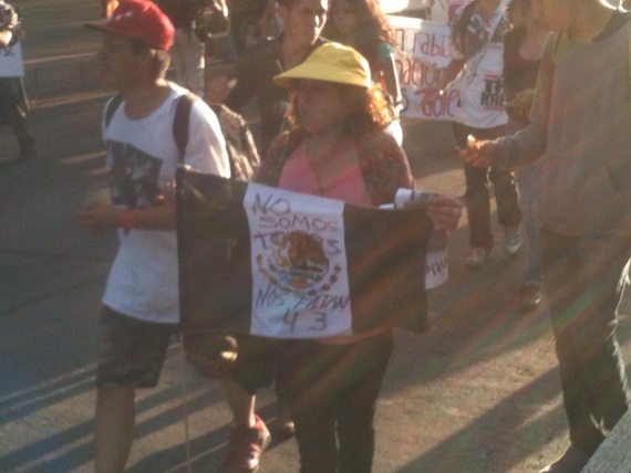 Y aunque hubo algunos jóvenes que cubrieron sus rostros para no ser identificados, también hubo quienes no lo hicieron y así fueron dejando a su paso, y ante la mirada curiosa de quienes los veían, mensajes como “Queremos justicia”, “México los busca, ¿dónde están?”, “Despierta pueblo”, “Ni un muerto más”, “Gobierno asesino”, “Peña asesino”, “Estamos en la lucha porque hablando no nos escuchan”, entre otros.