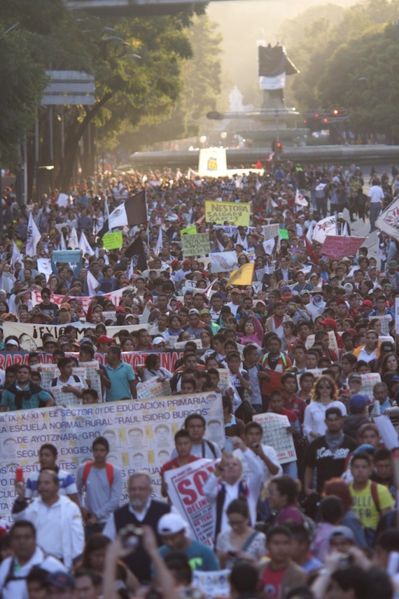 - Manifestación en la Ciudad de México por la desaparición de los 43 normalistas de Ayotzinapa. Se prepara movilización global. Foto: Antonio Cruz, SinEmbargo
