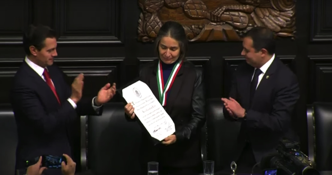 "Aunque esta medalla de honor está recayendo sobre mi persona la considero un reconocimiento a la vital importancia de la naturaleza y un medio ambiente sano", afirmó Carabias sobre la presea, máxima distinción civil otorgada por el Senado.