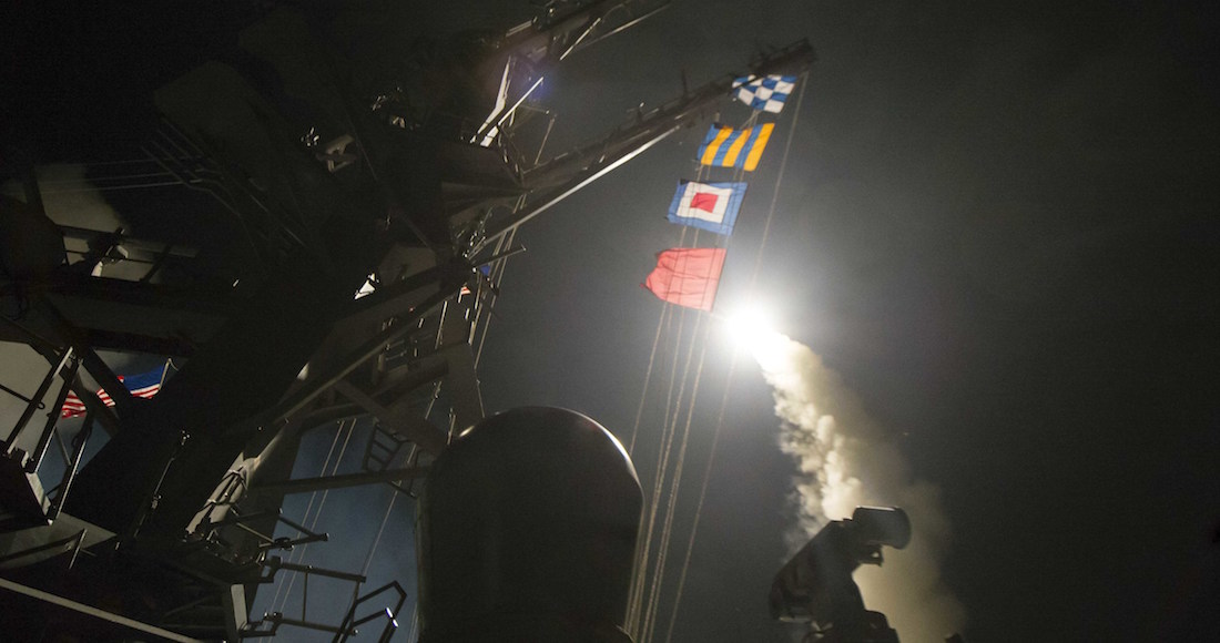 El ataque contra la base de Shayrat, que se encuentra a 25 kilómetros al sureste de la ciudad de Homs, se llevó a cabo de madrugada con misiles crucero lanzados desde los destructores estadounidenses USS Ross y USS Porter desplegados en el Mediterráneo.