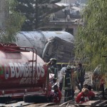 En el lugar, unidades de emergencia, personal del Ejército, de Seguridad y de Bomberos acordonan la zona, auxilian a los vecinos, trasladan a los heridos a varios hospitales y trabajan en sofocar el incendio.