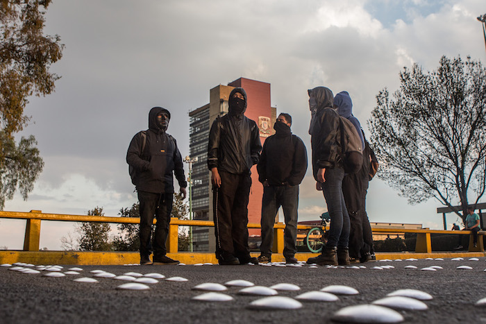 Previamente, estudiantes de la Preparatoria Nacional número 5 –ubicada en la delegación Tlalpan de la Ciudad de México– realizaron este día un paro en protesta por las que se han presentado en el caso del joven Marco Antonio Sánchez Flores.