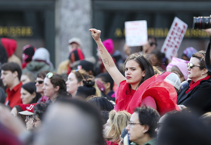 En Estados Unidos, las mujeres no fueron a trabajar, cerraron sus monederos, vistieron de rojo y se aprestaron a asistir a marchas en todo el país en una demostración de fuerza económica y social como parte de los actos del Día Internacional de la Mujer.
