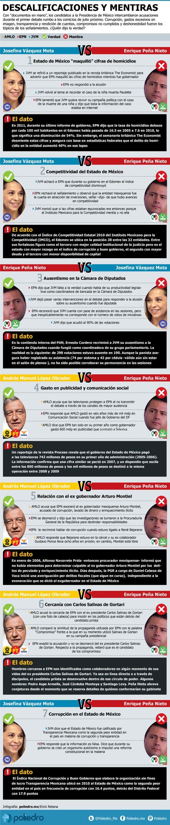 Pero la revisión de las principales acusaciones y respuestas permite advertir que hubo dos grandes mentirosos: Primero, Enrique Peña Nieto, el más bravo a la hora de rebatir; y luego Josefina Vázquez Mota.