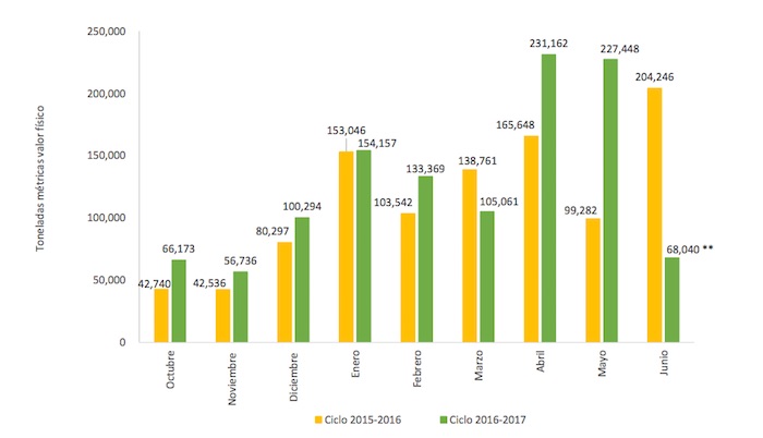 En el anterior ciclo agrícola (octubre 2015-septiembre 2016) México produjo 6 millones 117 mil 048 toneladas físicas de azúcar, de las cuales, 4 millones 693 mil 046 fueron para el consumo nacional.