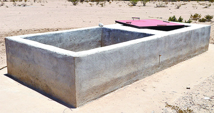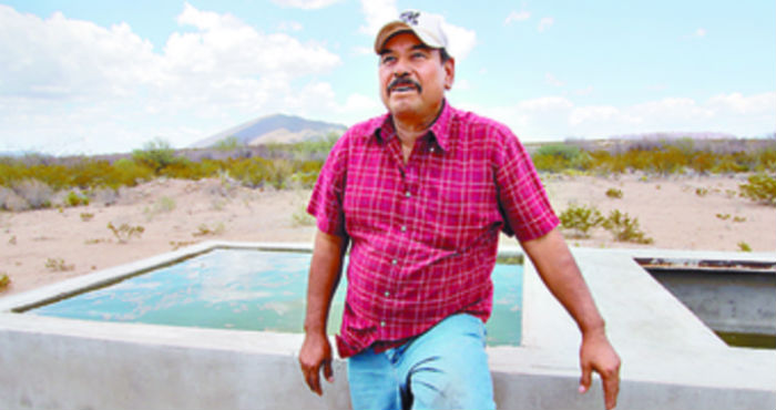A mediodía, 40 grados de calor y ni un árbol donde guarecerse del sol, Eduardo Villarreal Rodríguez, “Guaro”, está parado frente a la pila y el bebedero que hace unos cinco años se construyó con recursos de la Conaza en la Pasta de las Alazanas, localizada a unos 18 kilómetros del ejido Piedritas.