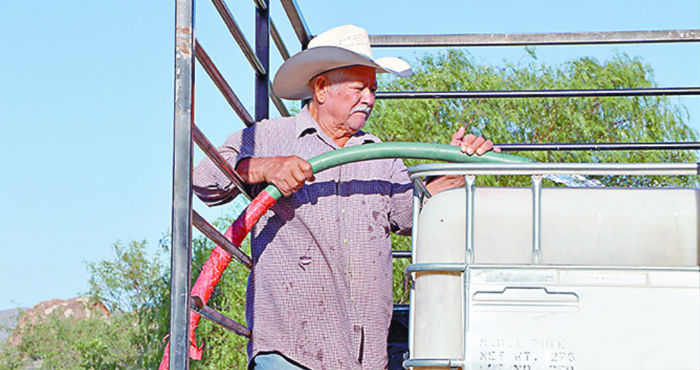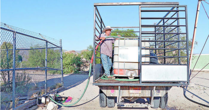 "El agua esa que ves en el abrevadero la acarreamos pa' las vacas, es de uso del rancho y aquí la traemos en las trocas, porque ahorita no hay agua en ninguna parte”.