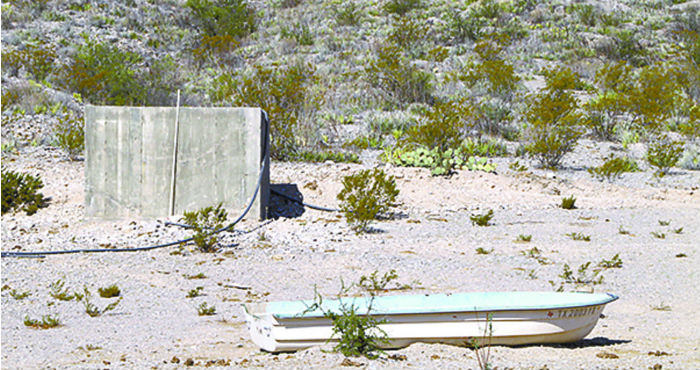 Un bebedero en Piedritas cuya fuente de abastecimiento se ubica a unos 18 kilómetros y por eso el agua no llega y los ejidatarios deben acarrearla en sus trocas, con su gasolina, para evitar que sus animales se vayan a encalmar, que quiere decir, según el Diccionario de la Real Academia Española de la Lengua, “sofocarse o enfermar por exceso de calor o trabajo”.