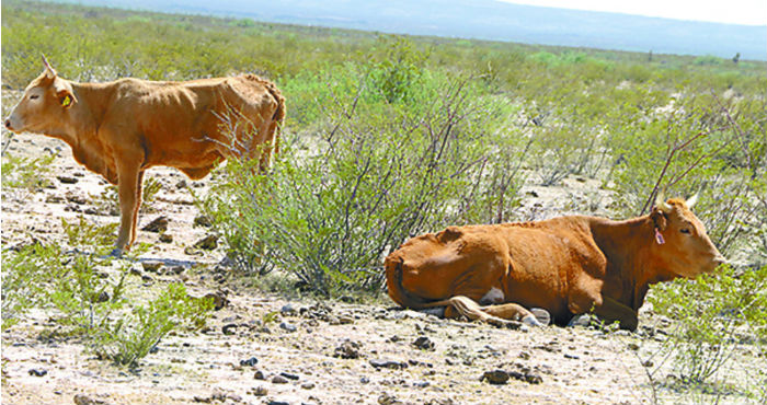 Como a las 3:00 de la tarde José Arturo cuida unas vacas anémicas que están paciendo en el monte marchito de su pasta El Granjeno.