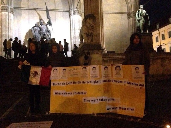 En Múnich, Alemania, unas 50 personas se unieron a la protesta mundial por los normalistas.