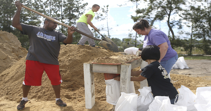 Habitantes llenan sacos de arena en Lynn Haven, Florida, este lunes previo a que el huracán Michael toque tierra en el estado. Foto: AP