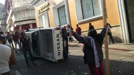 - Comerciantes se enfrenatn contra granaderos por remodelación del Centro Histórico Foto: @reportevialcva
