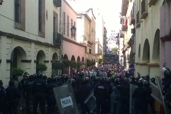 "Los servidores públicos encargados de hacer cumplir la ley recurrieron al uso de balas de goma y gases lacrimógeno para dispersar a los manifestantes y repeler las agresiones de los mismos", dijo la CDH Morelos.