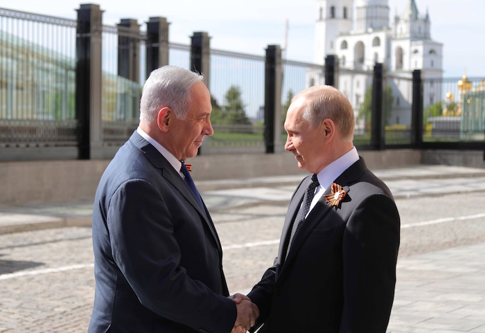Junto a él se sentaba el Primer Ministro israelí, Benjamin Netanyahu, de visita hoy en Moscú y con el que se entrevistará esta tarde para abordar la crisis de Siria o la salida de Estados Unidos del pacto nuclear iraní.