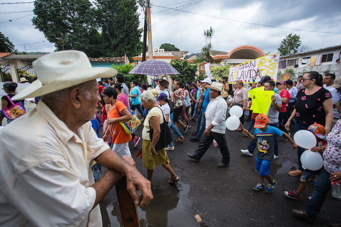 Después de realizar una marcha informativa por las principales calles del municipio y terminar con un mitin en la plaza Juárez, entre gritos “¡sí a la vida, no a la mina!”, “¡gritemos muy fuerte, la mina trae muerte!”, “¡en Veracruz queremos vivir, la mina se tiene que ir!”, las personas exigieron al Presidente municipal, Paulino Domínguez Sánchez, su definición clara en apoyo a la comunidad y no otorgar el cambio de uso de suelo.