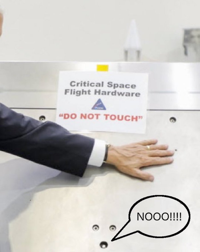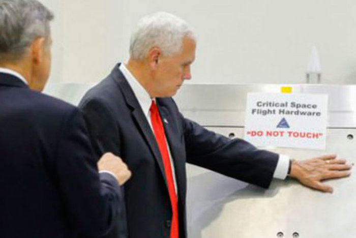 “Equipo crítico de vuelo espacial. NO TOCAR”, decía un letrero de la NASA. A Mike Pence, Vicepresidente de los Estados Unidos, no le importó la indicación, y se volvió viral.