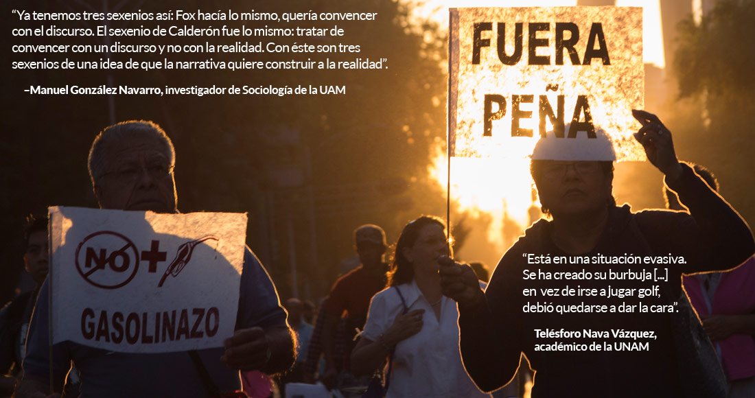 Acuña recordó que presidentes algunos ex presidentes llegaron a posicionarse como mandatarios fuertes, por ejemplo, Carlos Salinas quien llegó fortalecido a su Cuarto Informe de Gobierno. Mientras, Peña Nieto vivió el clímax de su sexenio en el segundo año con el "Pacto por México" y la aprobación de las reformas estructurales, pero a partir de su tercer año empezó su descenso. En 2014, por ejemplo, el escándalo de la “casa blanca” y la desaparición de los 43 normalistas de Ayotzinapa fueron dos momentos mortales para la figura presidencial.