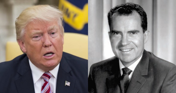 El sábado 20 de octubre de 1973, Nixon tomó una decisión a la desesperada que aceleraría su salida prematura del poder por el escándalo "Watergate" al pedir la salida del fiscal especial independiente encargado de las indagaciones, Archibald Cox. De manera similar, Trump despidió al director del FBI, James Comey.