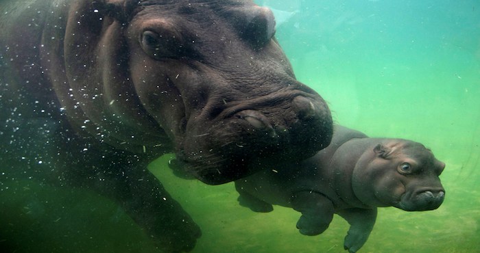 Los hipopótamos son una especie con piel gruesa, además de que tienen párpados transparentes y pueden cerrar sus fosas nasales y sus oídos para sumergirse hasta por 20 minutos sin salir a respirar.