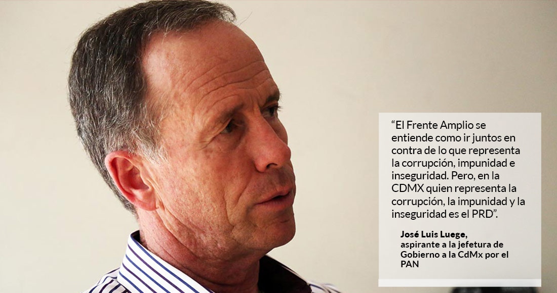Ciudad de México, 10 de agosto (SinEmbargo).– El Partido de la Revolución Democrática (PRD) representa la corrupción, impunidad e inseguridad en la Ciudad de México y lo que se debe conformar es un frente en su contra, sostiene el aspirante a la Jefatura de Gobierno por el Partido Acción Nacional (PAN), José Luis Luege Tamargo.