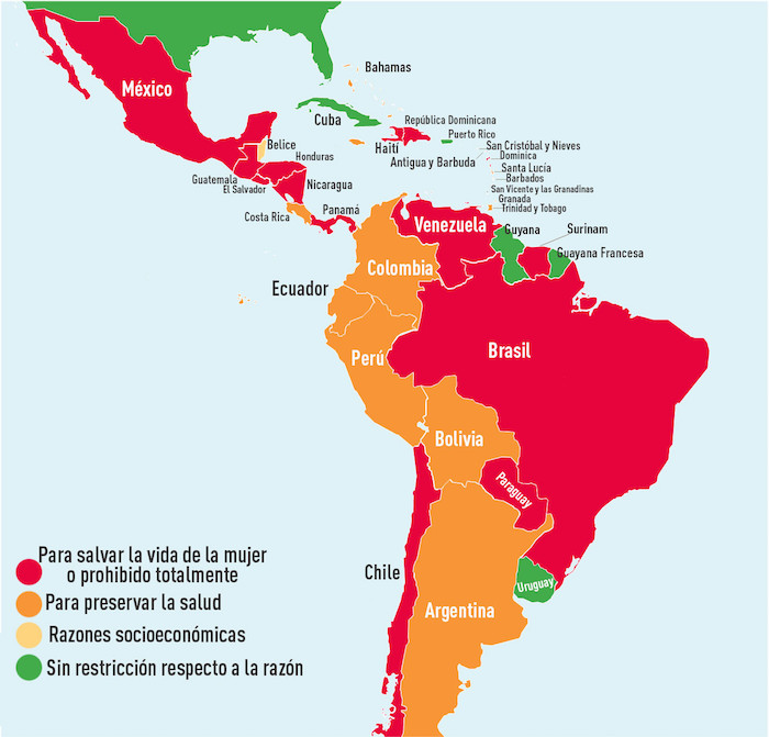 Mientras que en la mayoría de los países europeos la interrupción de embarazo es legal con independencia del motivo, Latinoamérica, junto con África, impone las mayores restricciones al respecto.